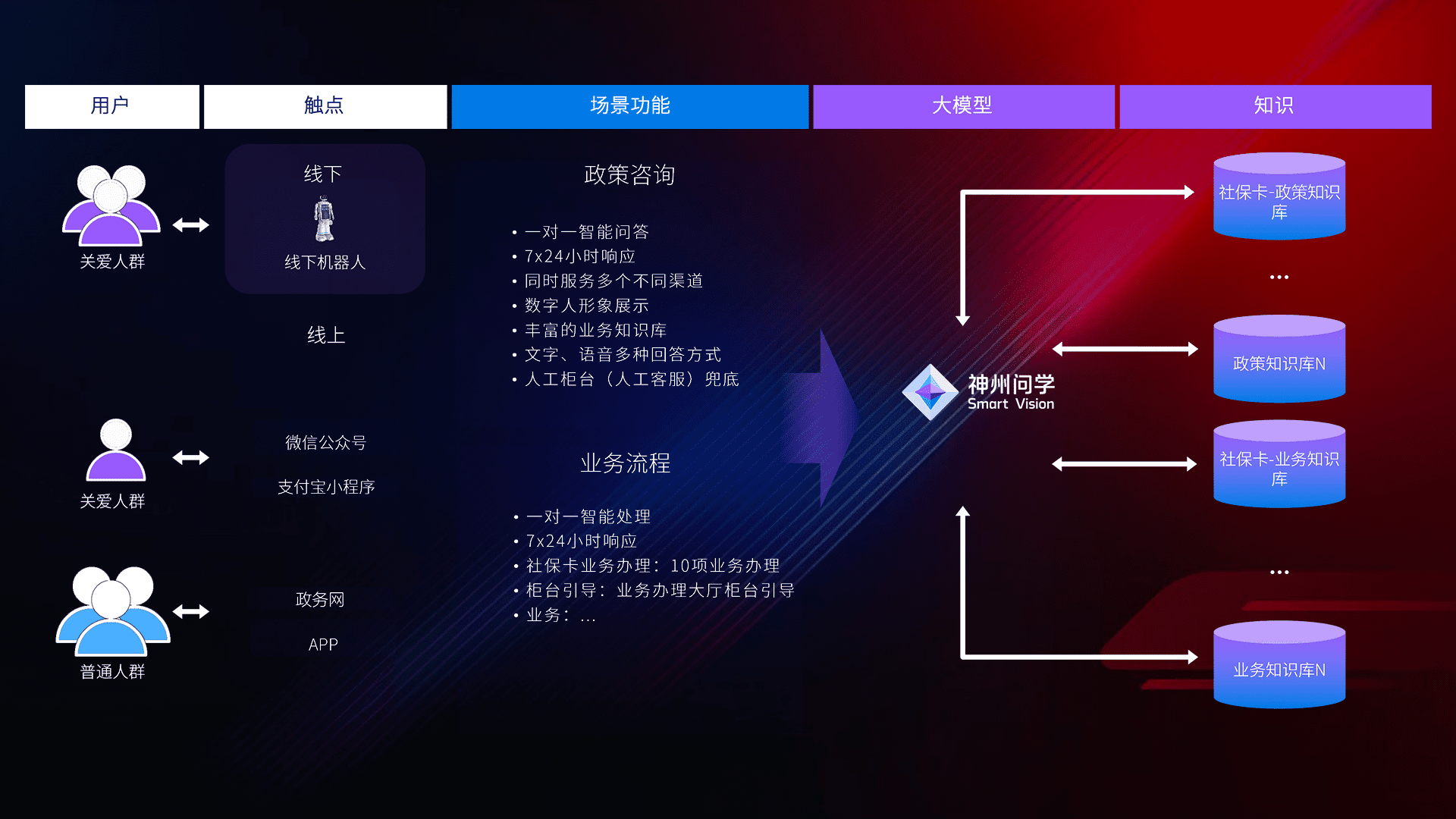 • 线上线下全覆盖:线上提供微信公众号、、支付宝小程序、、政务网、、、app多种渠道,,,,与线下机器人形成完整服务体系。。